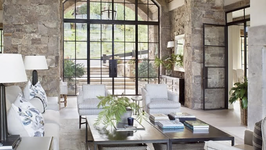 This look has become very popular in the past 10 Years. The Characteristics of this Style is White or Neutral Colors for Walls and Upholstered Furniture. Black Window Frames and Chandeliers / Light fixtures create contrast on the light Wall Color. Stone Walls in Neutral Colors with exposed Beams are common in this Style. Rustic accent pieces pull the Farmhouse look to incorporate this unique Design.
